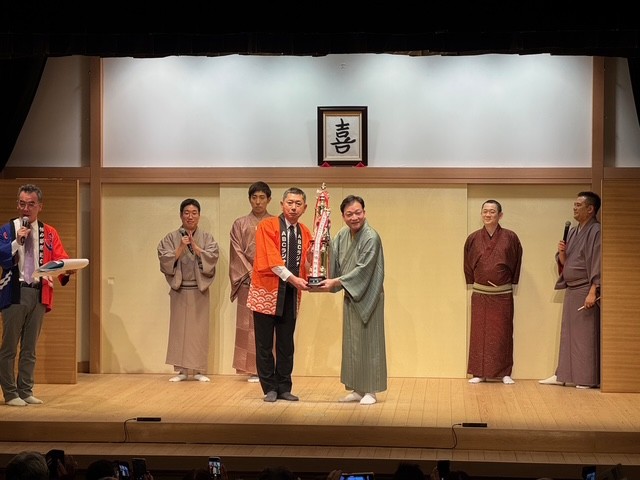 トロフィーを受け取る桂佐ん吉(右から3人目)