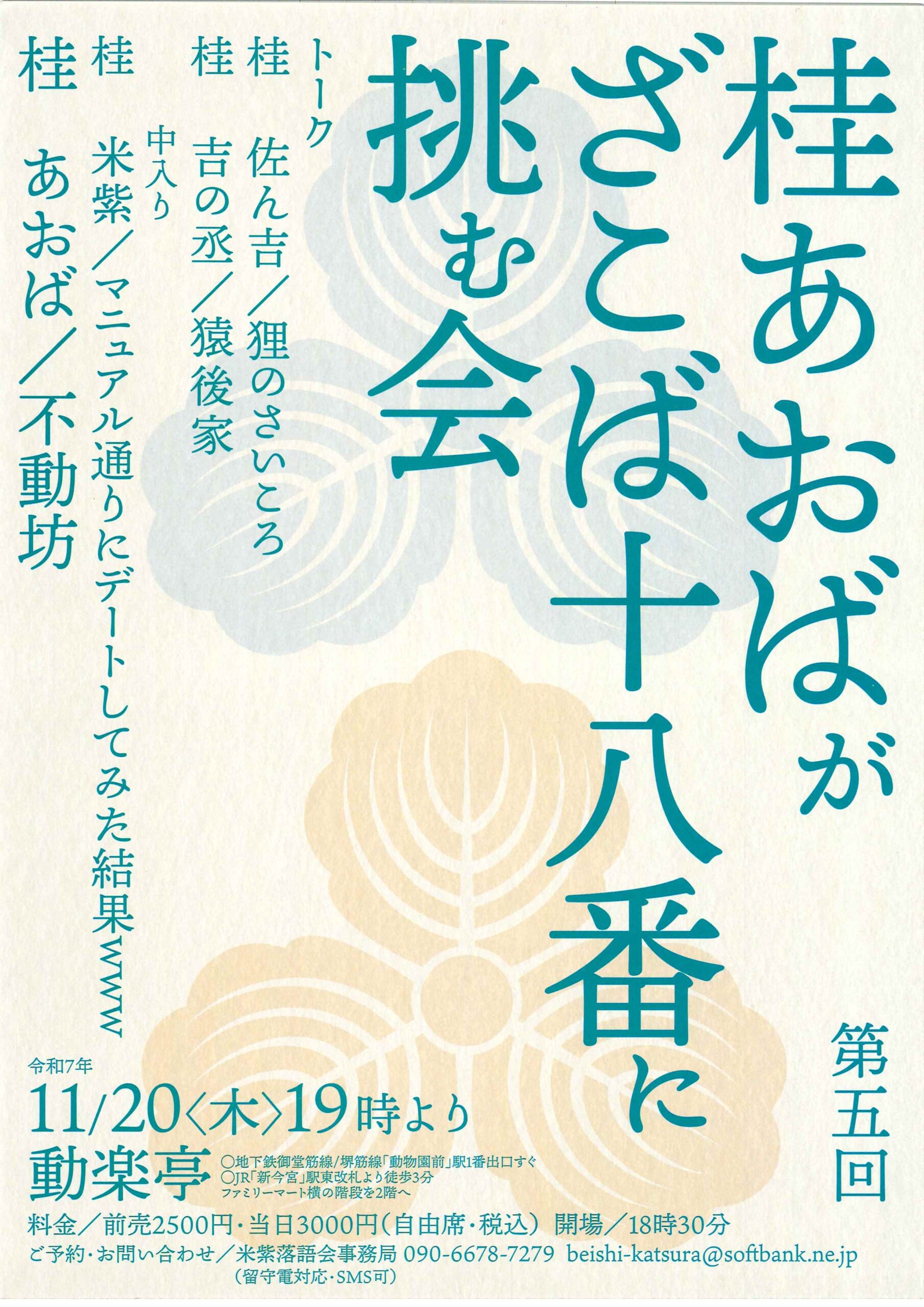 横浜にぎわい座 十一月興行 第87回上方落語会