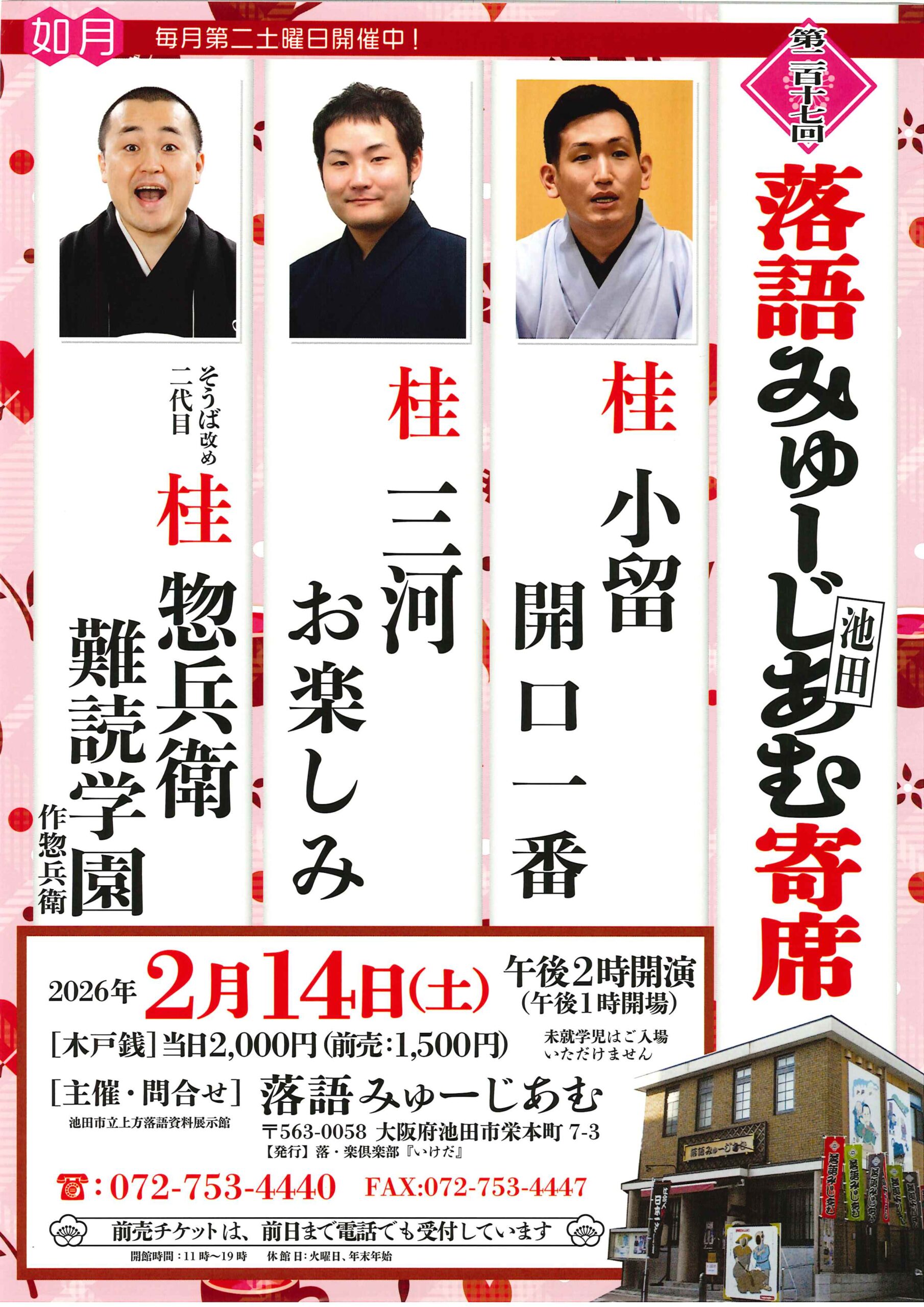 2026年2月11日(水・祝)14時開演(13時30分開場、17時30分~18時終演)