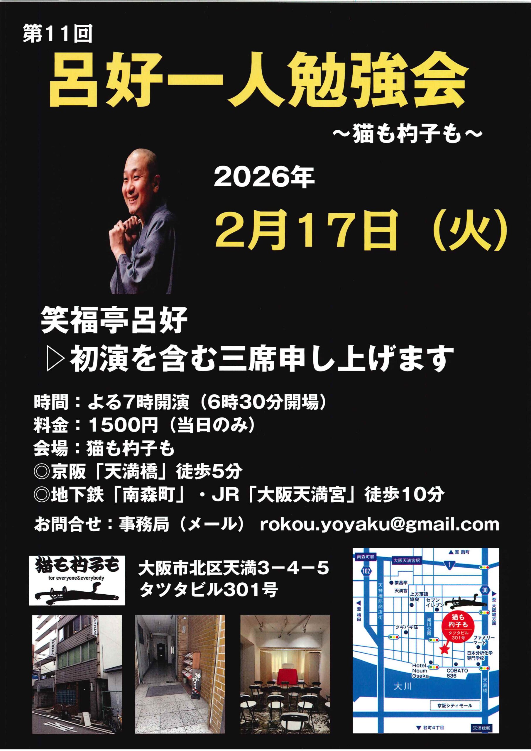 近日公演予定の落語会情報(チケットのお申込み、お問い合わせ等は各ページに記載の主催者、またはお問い合わせ先までお願いいたします。) [ 天満天神繁昌亭の公演情報 ] はこちらから