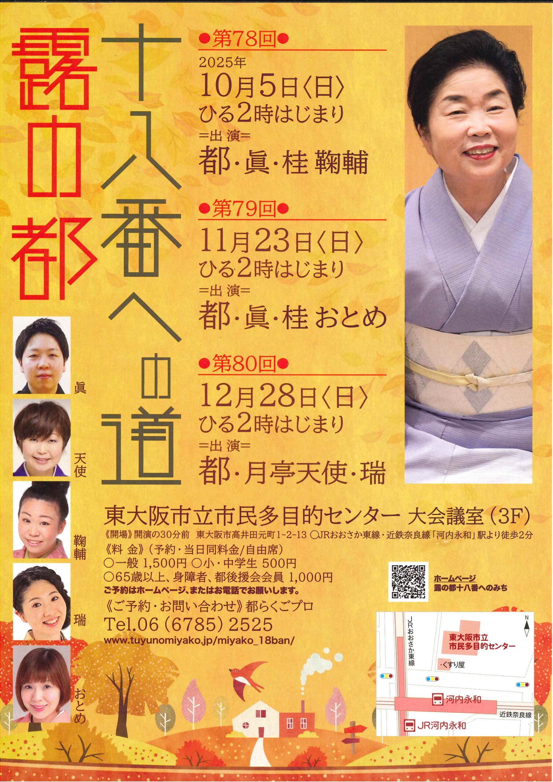 第80回 露の都 十八番への道 露の瑞露の都月亭天使 access_time 2025.12.28 シェア 送る ツイート 公演概要 公演日時 2025年12月28日(日)14時開演(13時30分開場) 場所 東大阪市立多目的センター 大会議室(3F)(東大阪市高井田元町1-2-13) ♢JRおおさか東線・近鉄奈良線「河内永和」駅より徒歩2分 出演者 露の 都 月亭 天使 露の 瑞 料金 一般 1,500 円 小・中学生 500 円 65歳以上、身障者、都後援会会員 1,000 円 お問い合わせ Tel 06-6785-2525 www.tuyunomiyako.jp/miyako_18ban/ « 前へ一覧へ 次へ » 直近の落語会情報 2025年11月23日 第79回 露の都 十八番への道 露の都露の眞桂鞠輔 2025年11月23日 小鯛と米輝 古典と新作 桂米輝桂小鯛 2025年11月23日 芸歴三十周年記念 桂よね吉 京都落語会 桂よね吉桂あさ吉桂二豆