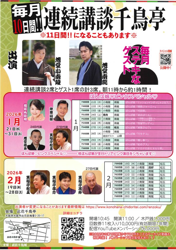 毎月10日間‼連続講談千鳥亭