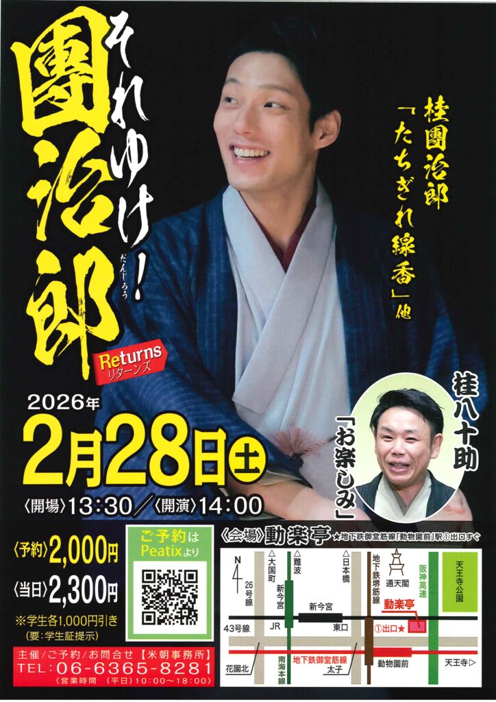 Tel 06-6365-8281(米朝事務所)