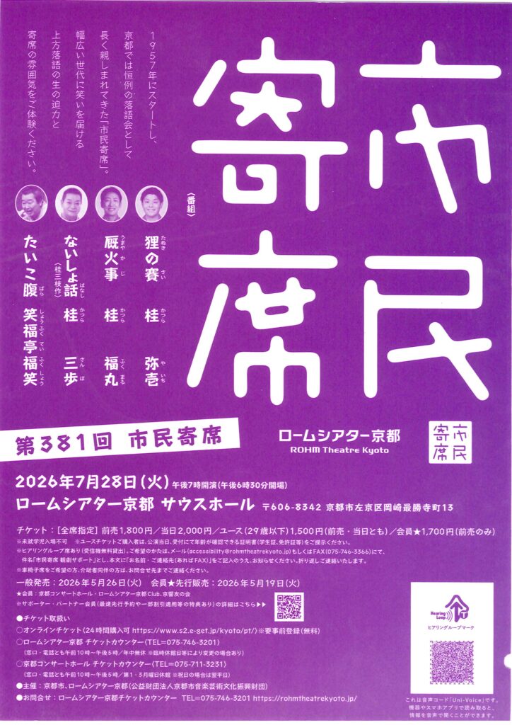 Tel 075-746-3201(ロームシアター京都チケットカウンター)