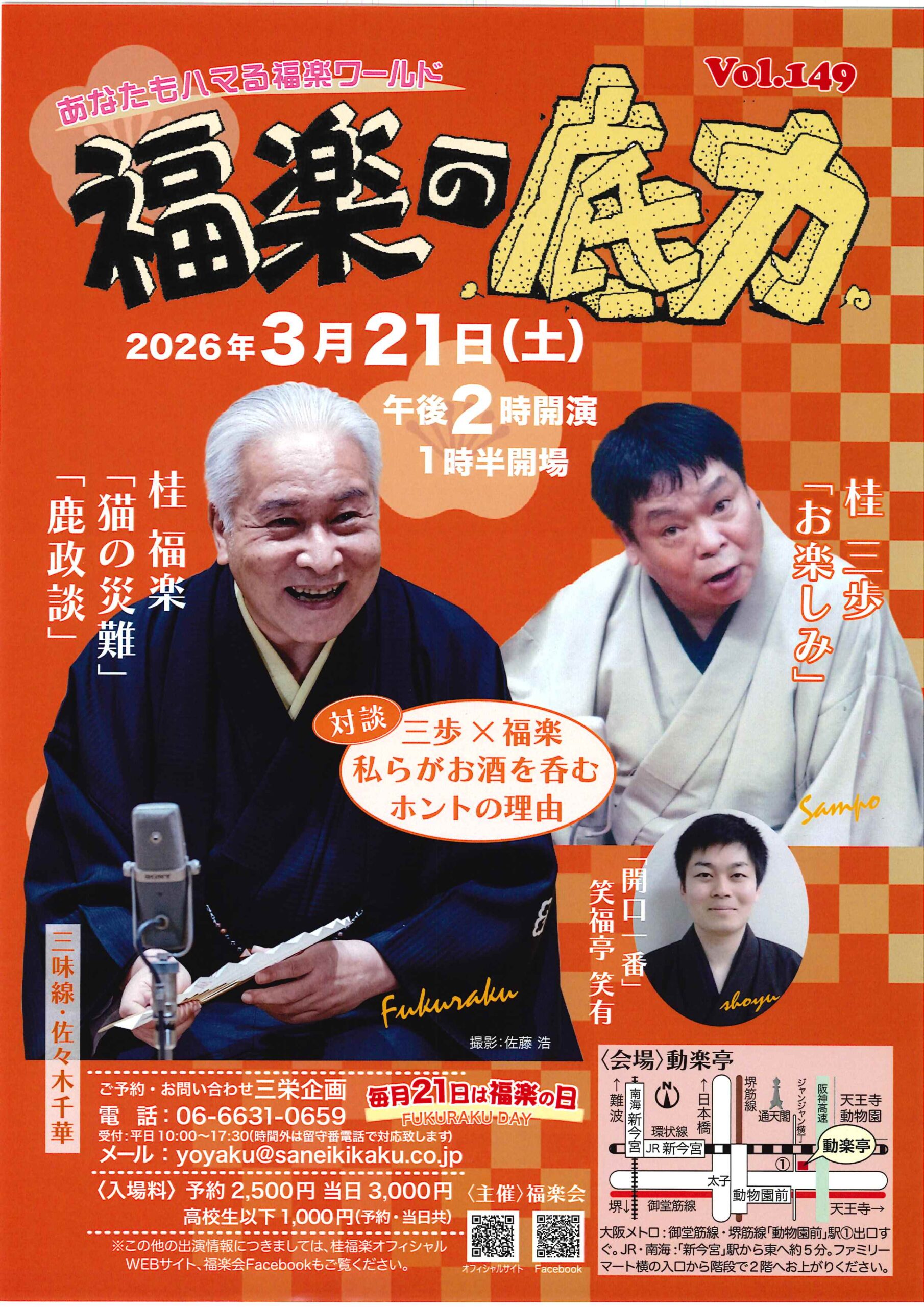 近日公演予定の落語会情報(チケットのお申込み、お問い合わせ等は各ページに記載の主催者、またはお問い合わせ先までお願いいたします。) [ 天満天神繁昌亭の公演情報 ] はこちらから