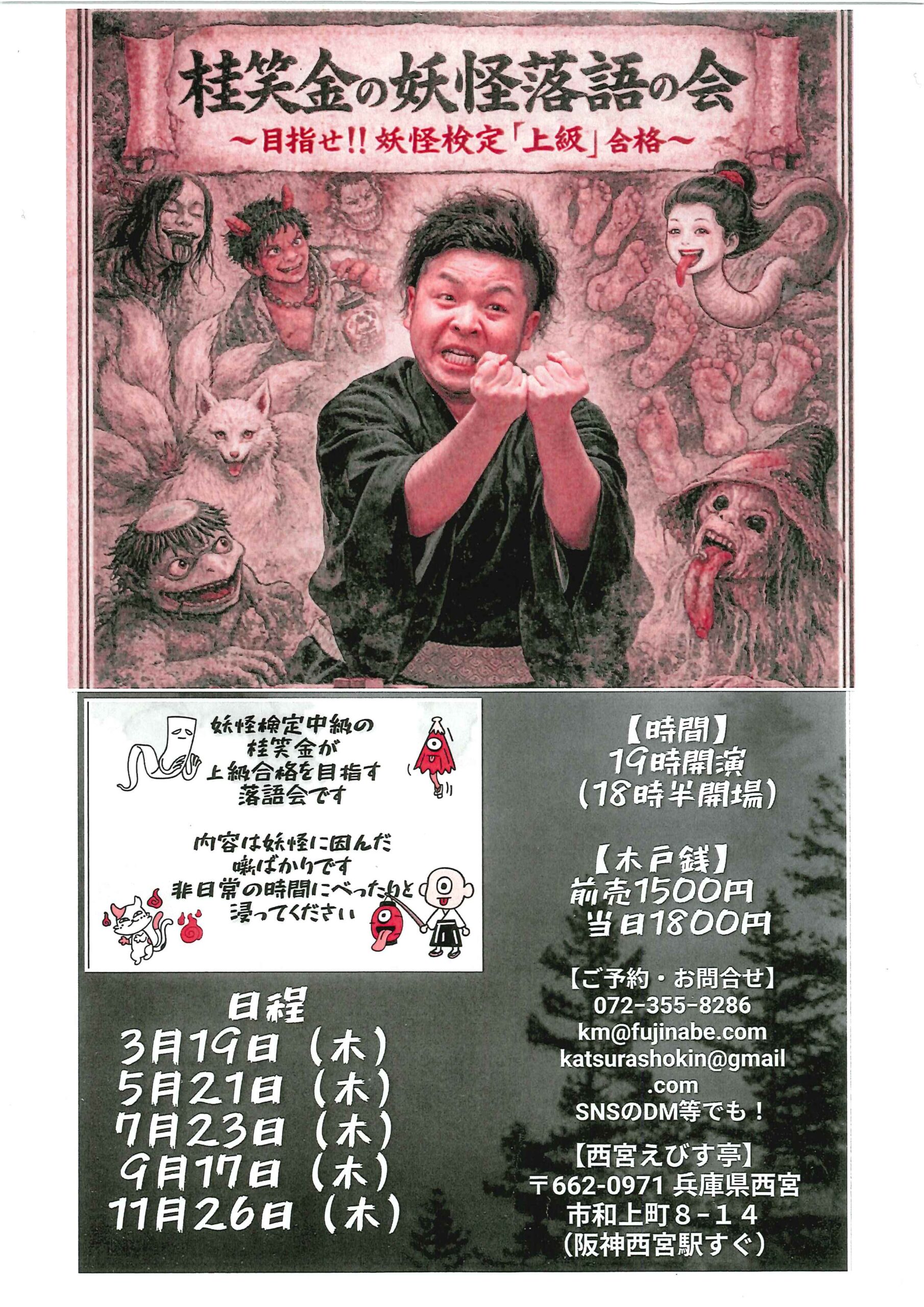 近日公演予定の落語会情報(チケットのお申込み、お問い合わせ等は各ページに記載の主催者、またはお問い合わせ先までお願いいたします。) [ 天満天神繁昌亭の公演情報 ] はこちらから